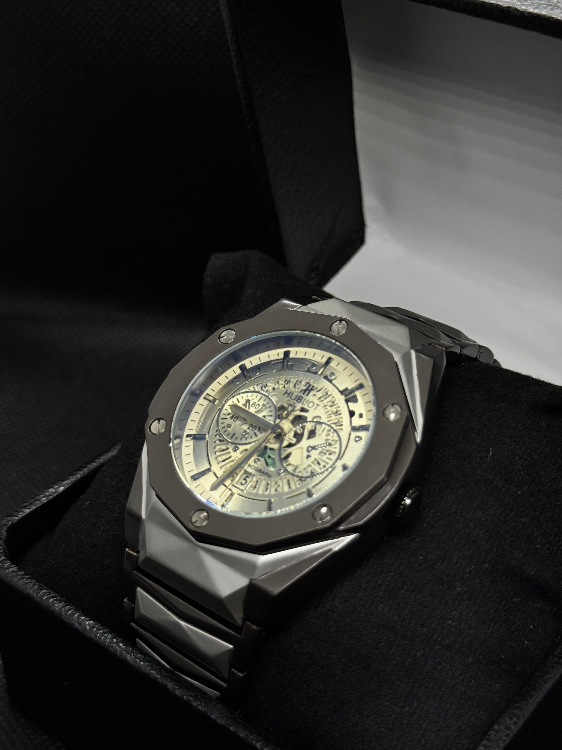 The Hublot Genève watch is the perfect harmony of Swiss craftsmanship, modern innovation, and bold design. Known for its philosophy of “The Art of Fusion”, Hublot combines premium materials such as