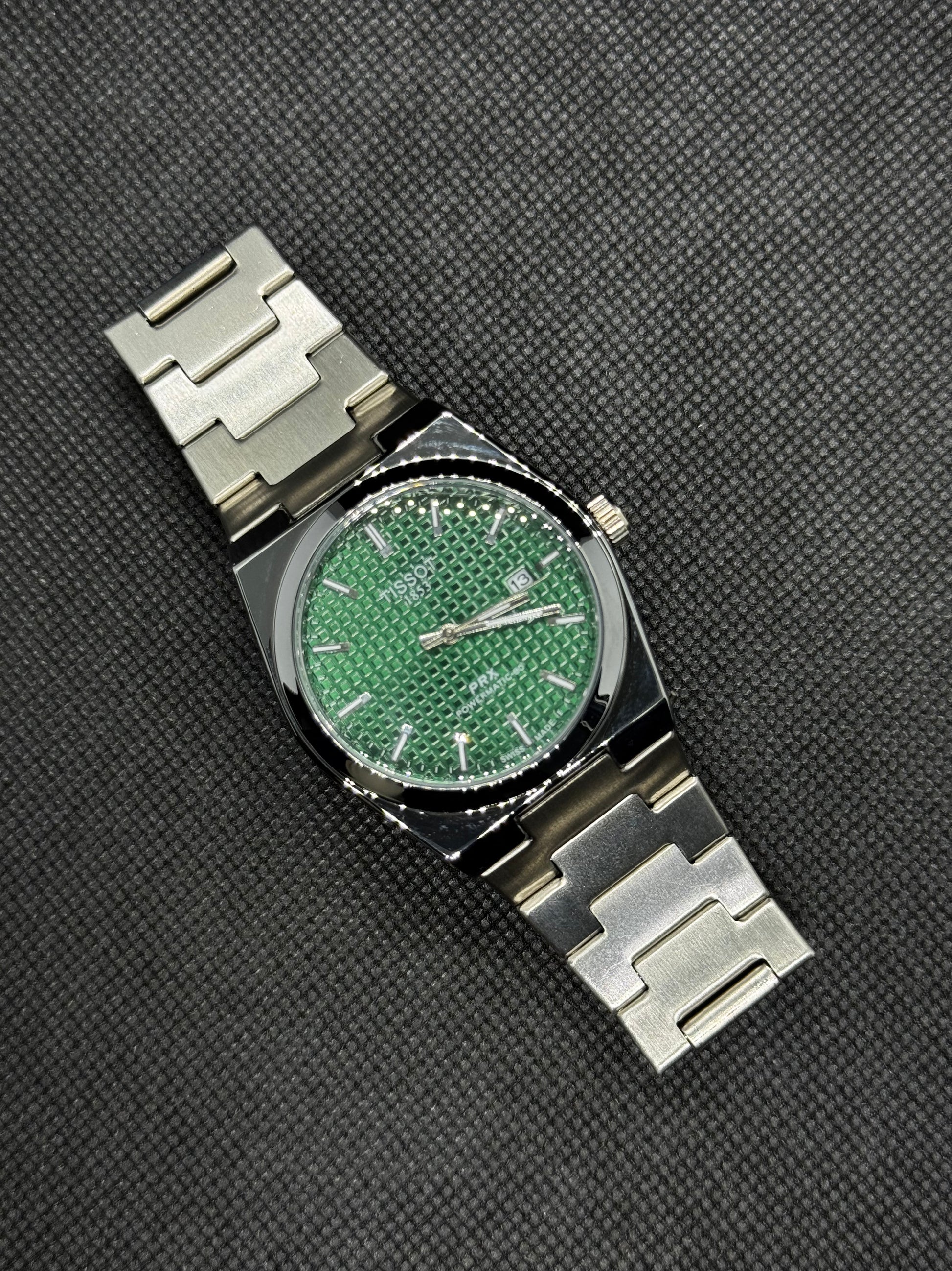 TISSOT Prx 1853 Green Dial 40mm Stainless Steel date and time